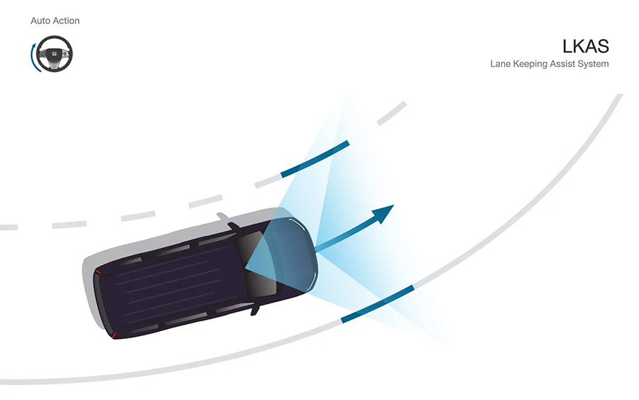 • ระบบช่วยควบคุมรถให้อยู่ในช่องทางเดินรถ LKAS