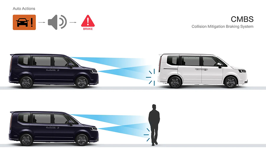 • ระบบเตือนการชนรถ และ คนเดินถนน พร้อมระบบช่วยเบรก CMBS