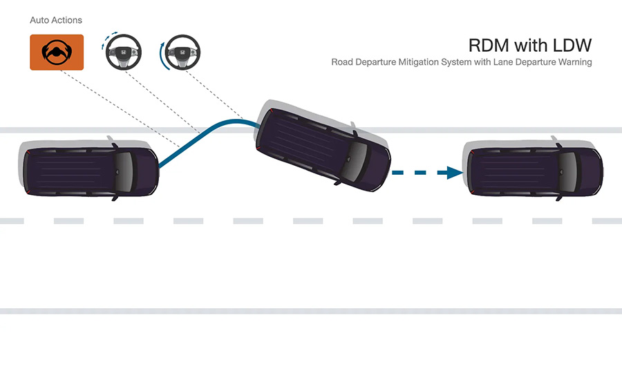 • ระบบเตือน และ ช่วยควบคุมเมื่อรถออกนอกช่องทางเดินรถ RDM with LDM