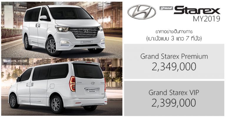Hyundai Grand Starex MY2019 ราคาอย่างเป็นทางการ Grand S … อ่านเพิ่มเติม ราคาอย่างเป็นทางการ Hyundai Grand Starex (MY2019) เพิ่ม Option ราคาเดิม : 2,349,000 – 2,399,000 บาท