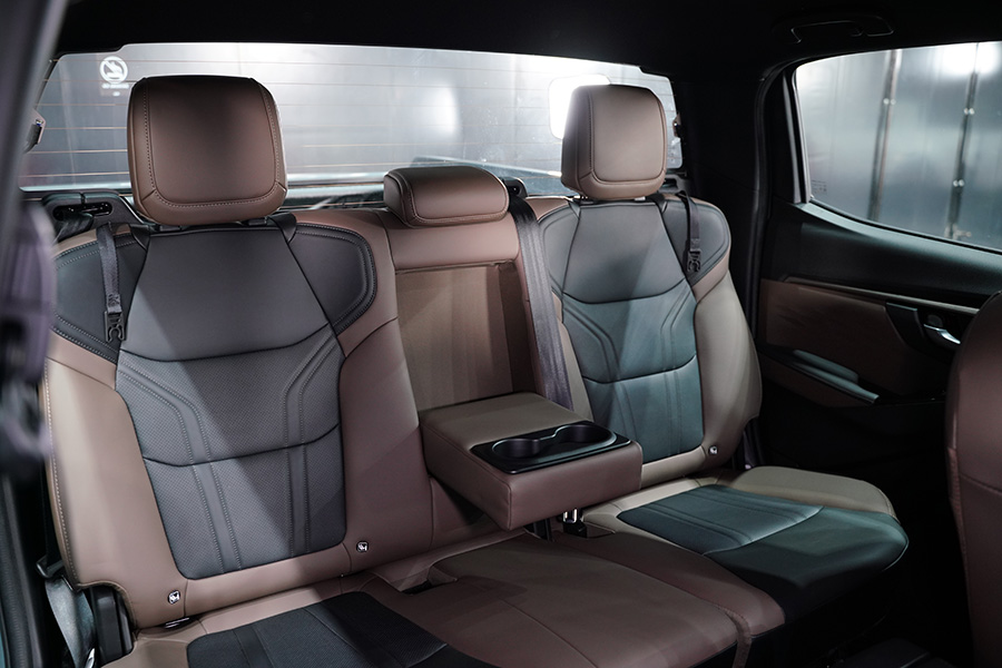 - เบานั่งด้านหลังแบบพับขึ้นได้ 60:40 พร้อมที่พักแขน ในรุ่น Double Cab