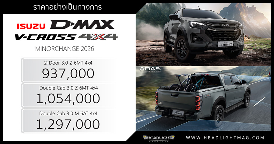 ราคาอย่างเป็นทางการ Isuzu D-Max V-Cross Minorchange 2026