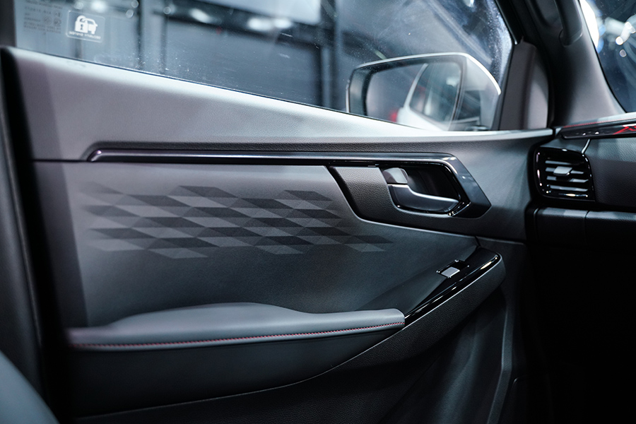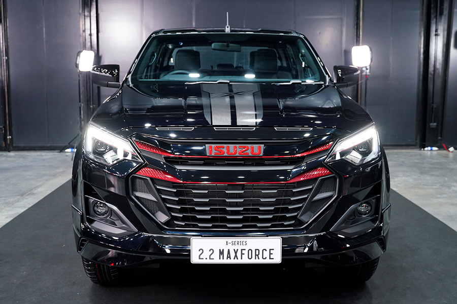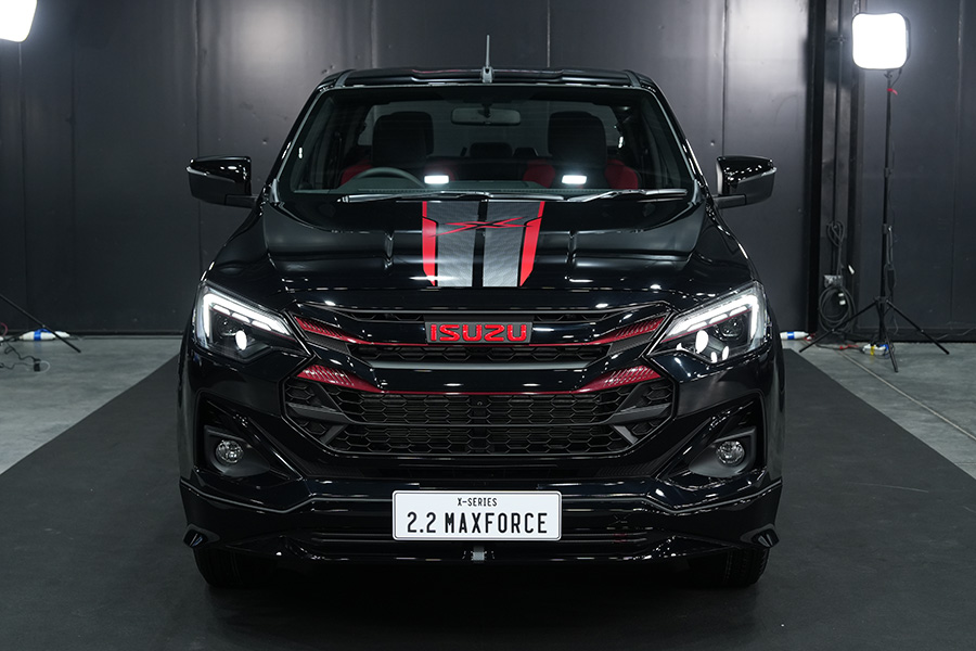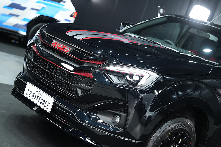 • กระจังหน้าสีแดงเข้ม Garnet Red วัสดุสีดำเงา และสัญลักษณ์ ISUZU สีแดง