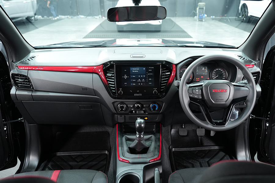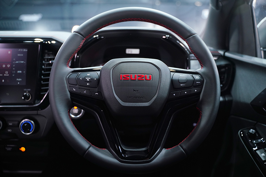 • สัญลักษณ์ ISUZU สีแดง บริเวณพวงมาลัย