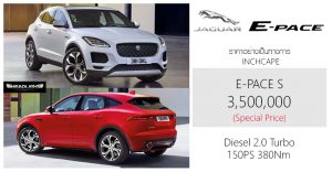 ราคาอย่างเป็นทางการ Jaguar E-Pace ดีเซล 2.0 เทอร์โบ 150 แรงม้า AWD : 3,500,000 บาท (นำเข้า CBU)