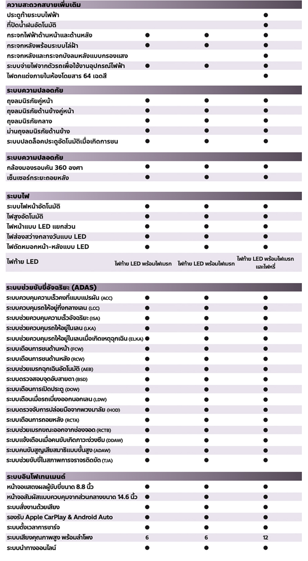 - ระบความปลอดภัยขั้นสูง ADAS 17 รายการ