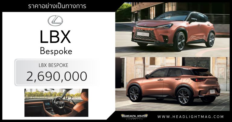 ราคาอย่างเป็นทางการ Lexus LBX BESPOKE LBX Bespoke : 2,6 … อ่านเพิ่มเติม ราคาอย่างเป็นทางการ Lexus LBX BESPOKE : 2,690,000 บาท | เลือก Custom สีภายนอก – ภายใน วัสดุตกแต่ง ล้ออัลลอย ฯลฯ