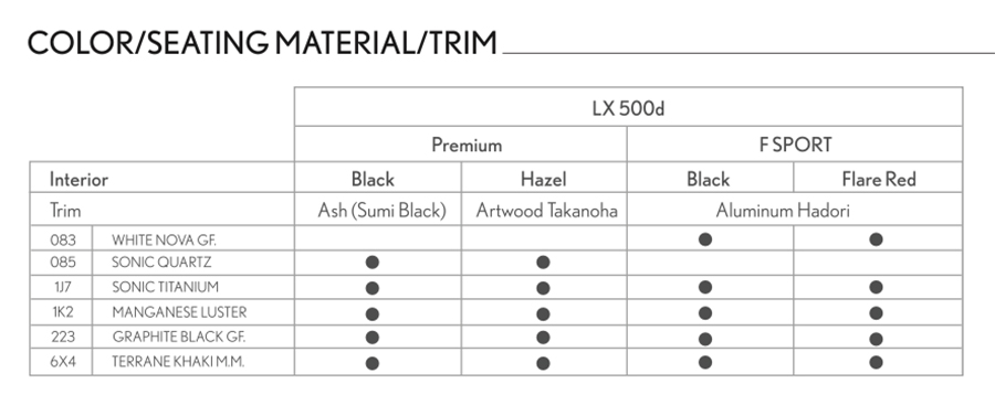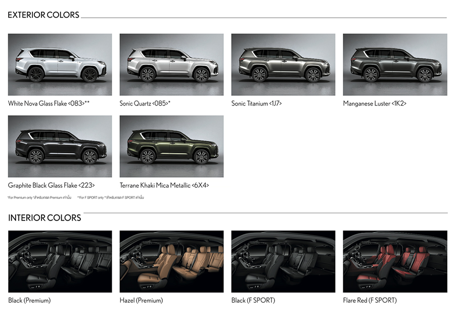• สีดำ – แดง Flare Red (เฉพาะรุ่น F-Sport)
