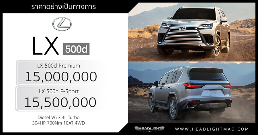 ราคาอย่างเป็นทางการ LEXUS LX 500d