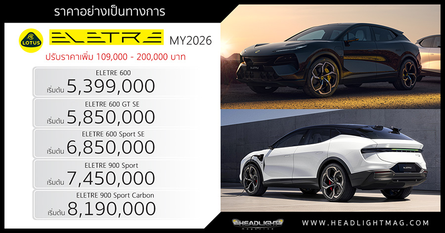 ราคาอย่างเป็นทางการ Lotus ELETRE (MY2026)