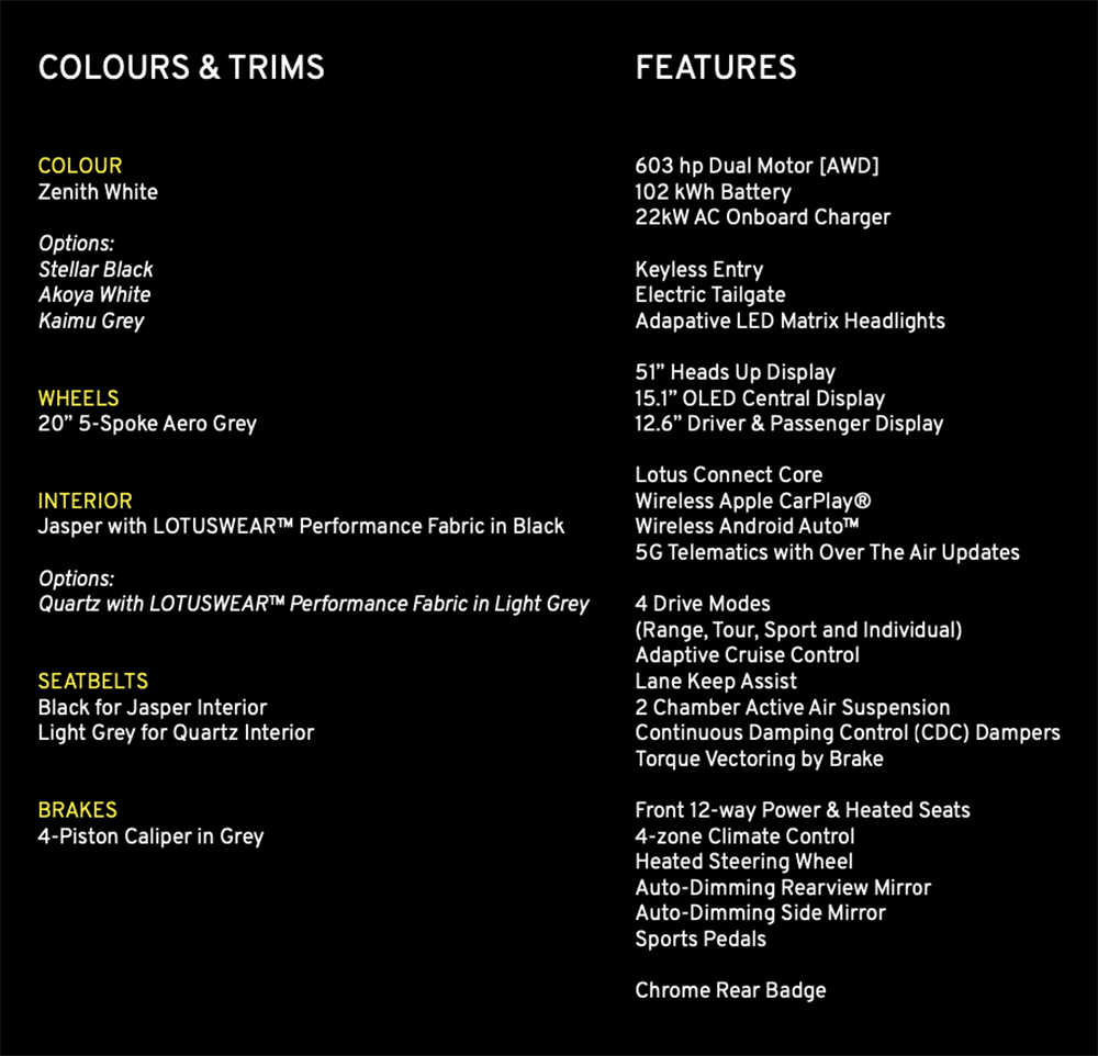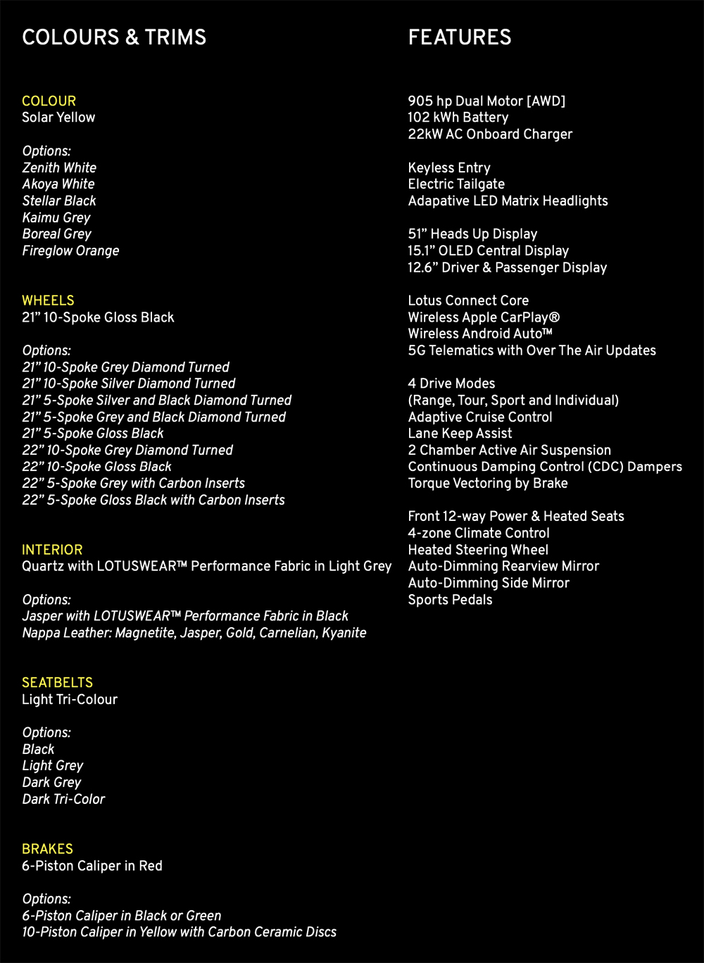 รายละเอียดของ Lotus Emeya (MY2026) แต่ละรุ่นย่อย