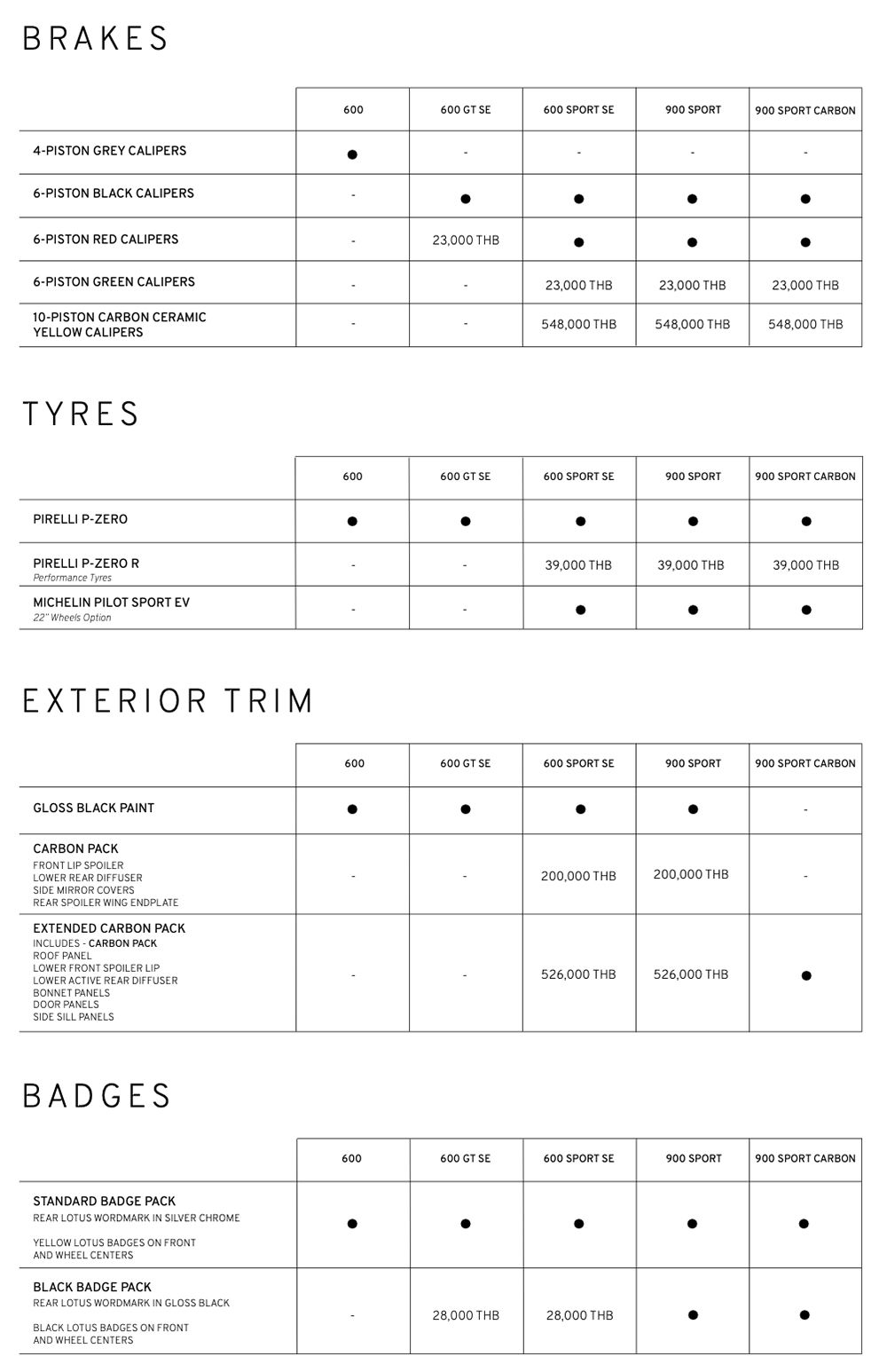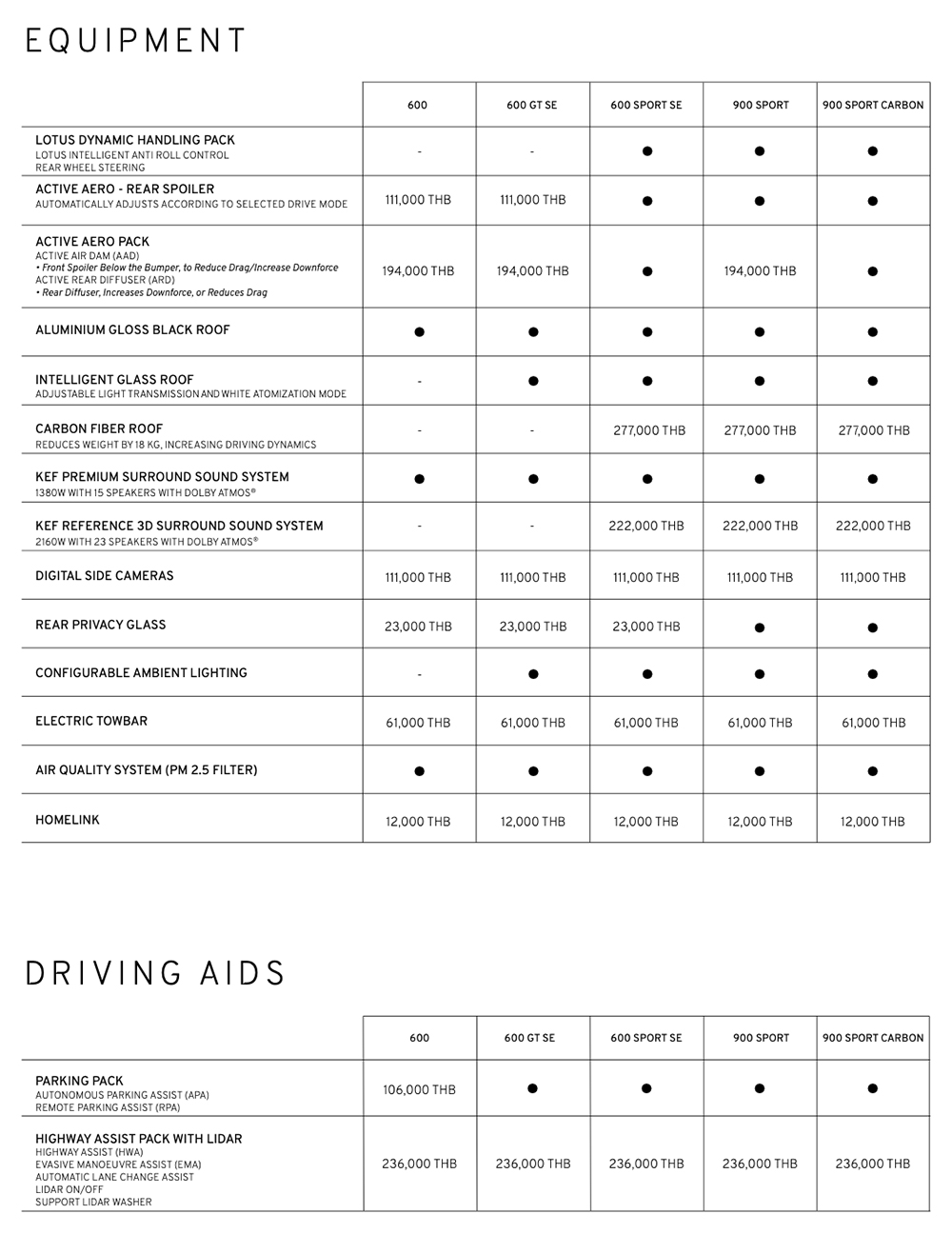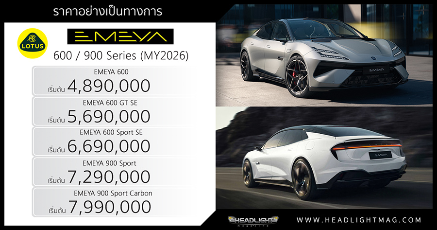 ราคาอย่างเป็นทางการ Lotus EMEYA 600 / 900 Series (MY2026)