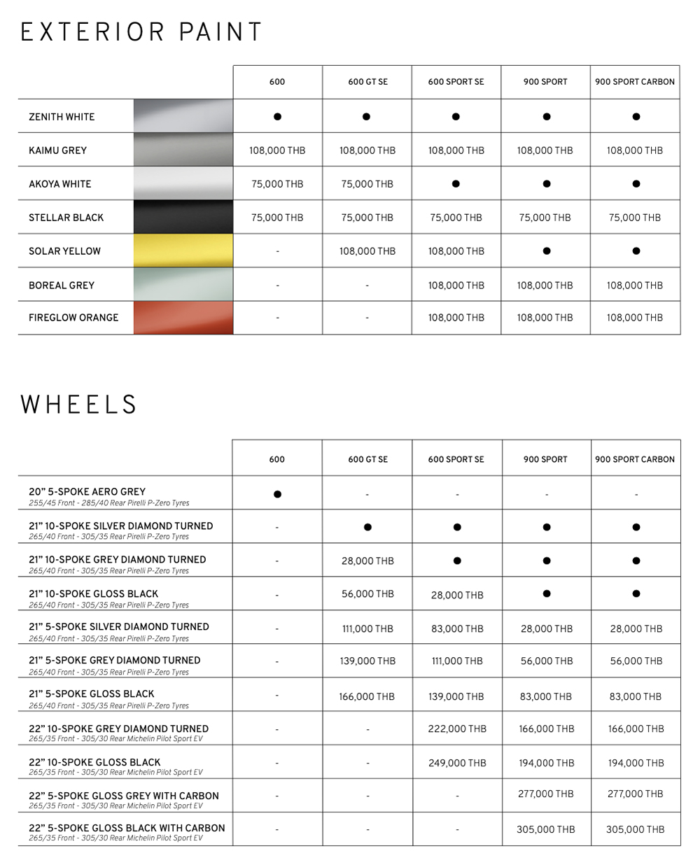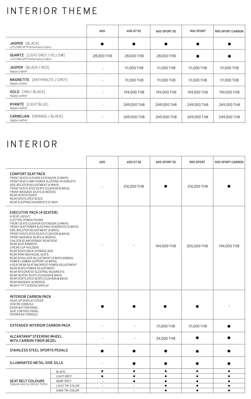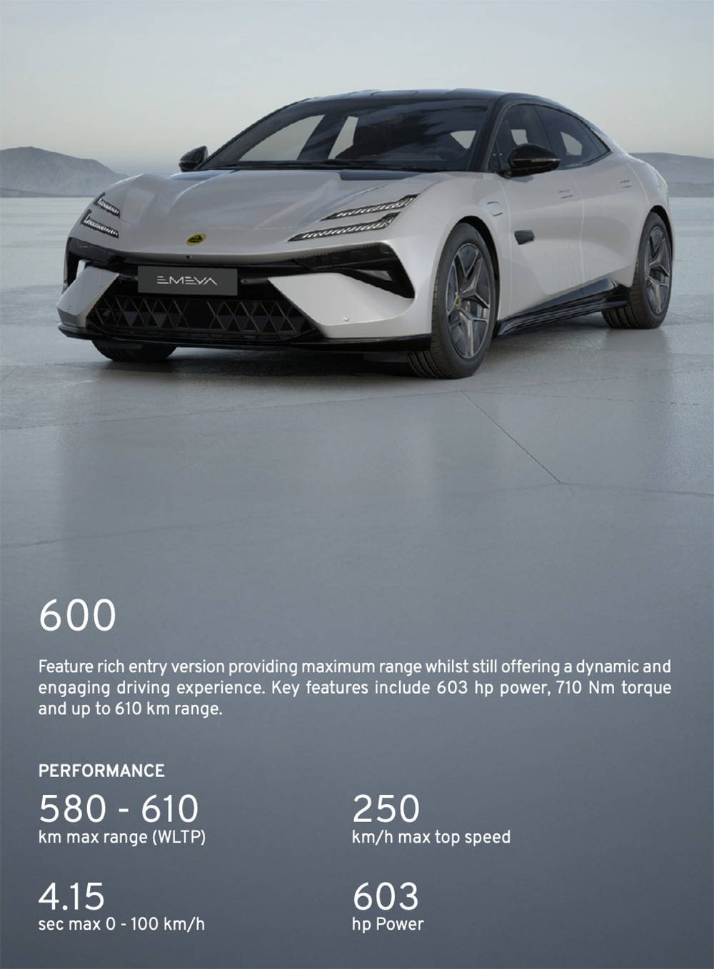 ราคาอย่างเป็นทางการ Lotus EMEYA 600 / 900 Series (MY2026)
