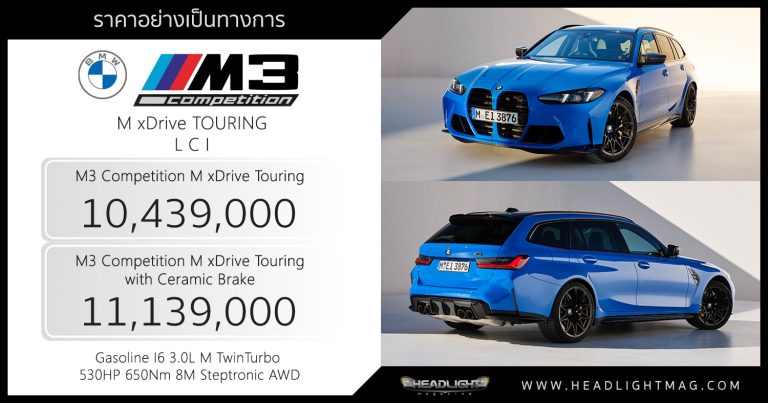 ราคาอย่างเป็นทางการ BMW M3 Competition M xDrive Touring (LCI) : 10,439,000 – 11,139,000 บาท