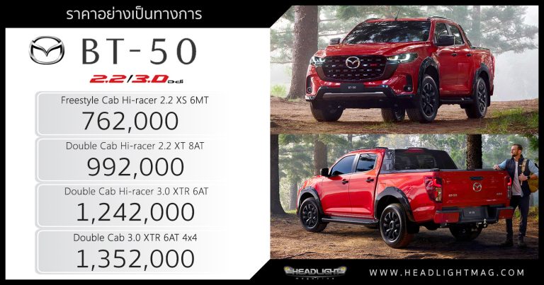 ราคาอย่างเป็นทางการ Mazda BT-50 Minorchange Freestyle … อ่านเพิ่มเติม ราคาอย่างเป็นทางการ Mazda BT-50 Minorchange 2025 : 762,000 – 1,352,000 บาท | ดีเซล 2.2 / 3.0 ลิตร Turbo