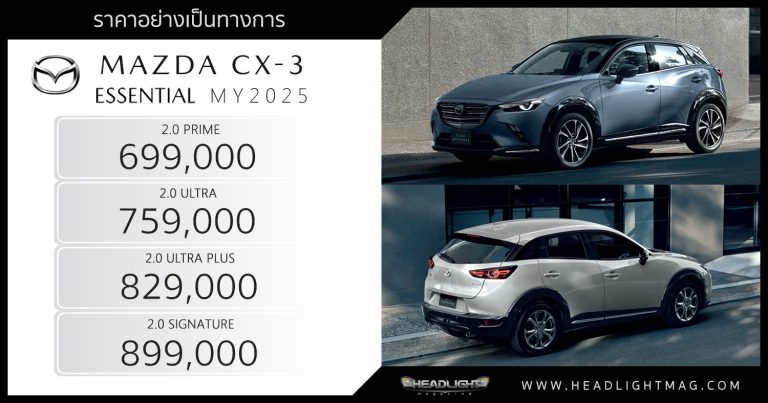 ราคาอย่างเป็นทางการ Mazda CX-3 ESSENTIAL (MY2025) CX-3 … อ่านเพิ่มเติม ราคาอย่างเป็นทางการ + เทียบสเป็ค Mazda CX-3 ESSENTIAL (MY2025) : 699,000 – 899,000 บาท | ถูกลง 71,000 บาท
