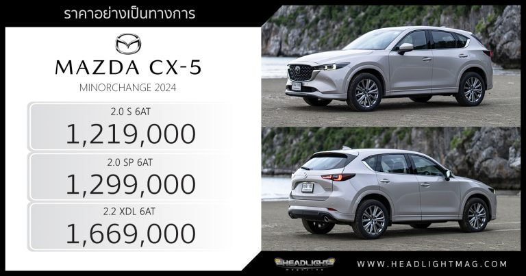 ราคาอย่างเป็นทางการ Mazda CX-5 Minorchange 2024 CX-5 2. … อ่านเพิ่มเติม ราคาอย่างเป็นทางการ Mazda CX-5 Minorchange 2024 : 1,219,000 – 1,669,000 บาท | ปรับดีไซน์ เพิ่มอ็อพชั่น ราคาถูกลง !