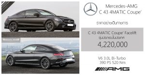 ราคาอย่างเป็นทางการ Mercedes-AMG C 43 Coupe’ Facelift : 4,220,000 บาท (ประกอบในประเทศ)