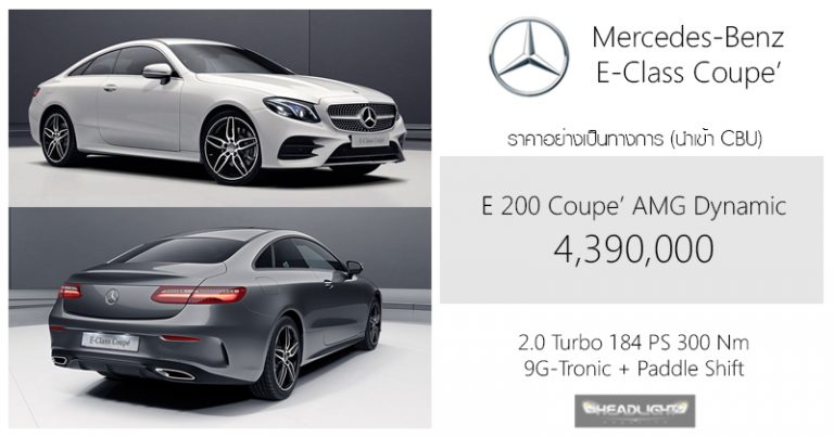 ราคาอย่างเป็นทางการ Mercedes-Benz E 200 Coupe’ AMG Dynamic : 4,390,000 บาท (นำเข้า CBU)
