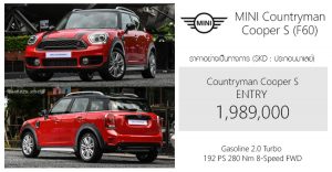 ราคาอย่างเป็นทางการ MINI Countryman Cooper S ENTRY : 1,989,000 บาท (F60 : SKD)