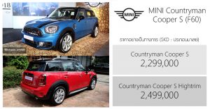 ราคาอย่างเป็นทางการ MINI Countryman F60 (SKD) : 2,299,000 – 2,499,000 บาท (ถูกลง 460,000 บาท)