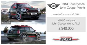 ราคาอย่างเป็นทางการ MINI JCW Countryman ALL4 : 231 แรงม้า : 3,548,000 บาท (นำเข้า CBU)