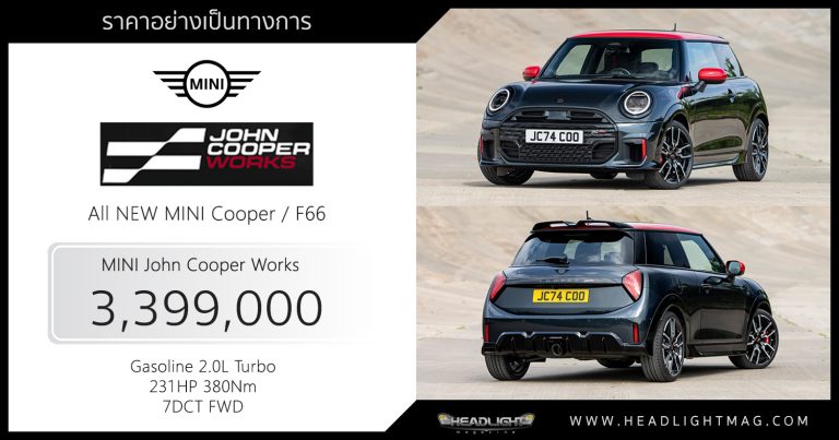 ราคาอย่างเป็นทางการ All NEW MINI John Cooper Works : 3,399,000 บาท | เบนซิน 2.0L Turbo 231 แรงม้า