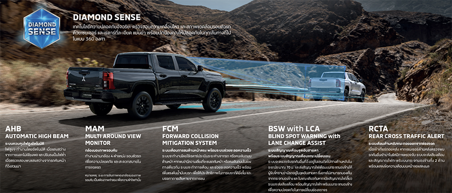 - ระบบเตือนจุดอับสายตาด้านข้าง พร้อมสัญญาณเตือนขณะเปลี่ยนเลน BSW with LCA (Blind Spot Warning with Lane Cahnge Assist)