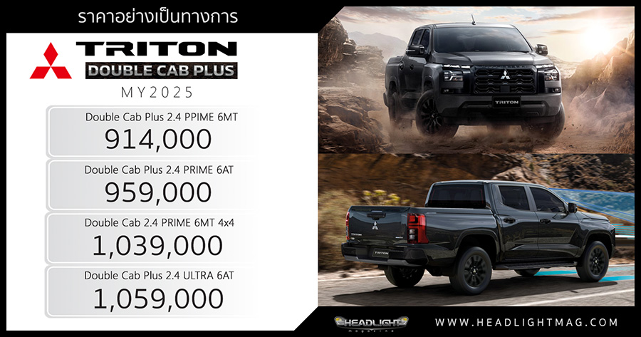 ราคาอย่างเป็นทางการ Mitsubishi TRITON Doublecab PLUS (MY2025)