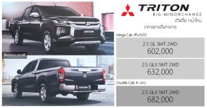 Mitsubishi Triton Minorchange (ตัวเตี้ย หน้าใหม่) ราคาอ … อ่านเพิ่มเติม ราคาอย่างเป็นทางการ Mitsubishi Triton Minorchange ตัวเตี้ย หน้าใหม่ : 602,000 – 682,000 บาท (Mega Cab – Double Cab)