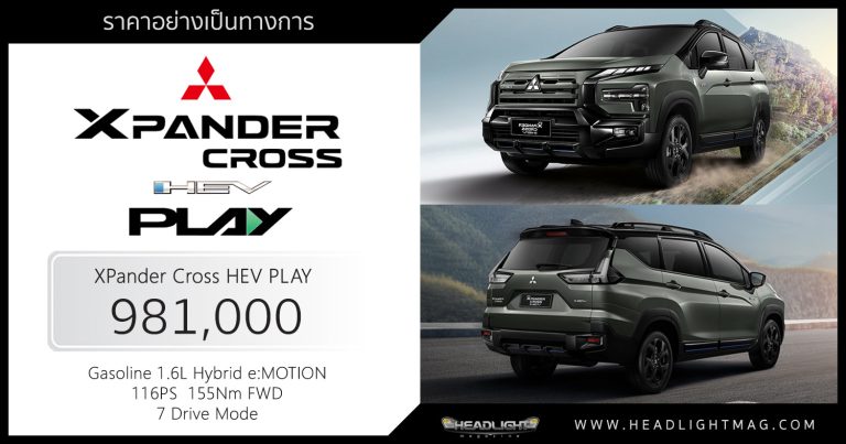 ราคาอย่างเป็นทางการ Mitsubishi XPander CROSS HEV PLAY : 981,000 บาท | รุ่นตกแต่งพิเศษ จำนวนจำกัด