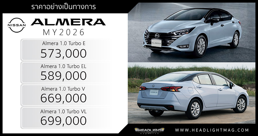 ราคาอย่างเป็นทางการ Nissan Almera MY2026