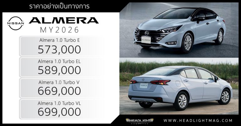 ราคาอย่างเป็นทางการ Nissan ALMERA MY2026 : 573,000 – 699,000 บาท | ปรับอ็อพชั่น ปรับราคา
