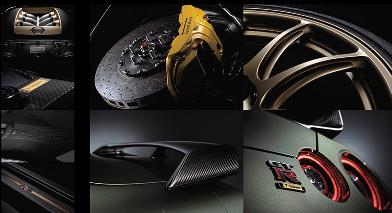 Nissan GT-R T-spec มาจากคำว่า Trend Maker หรือ ผู้นำกระแส สื่อถึงสิ่งที่ GT-R เป็นมาโดยตลอด ส่วนความพิเศษไม่ได้มีแค่สองสีใหม่อย่าง สีม่วง Midnight Purple และ สีเขียว Millennium Jade เท่านั้น แต่ยังมีเบรกคาร์บอนเซรามิค, สปอยเลอร์หลังคาร์บอน, ฝาครอบเครื่องพิเศษ และ โลโก้ชื่อรุ่นหน้า – หลัง
