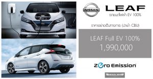 ราคาอย่างเป็นทางการ Nissan LEAF รถยนต์ไฟฟ้า EV 100% : 1,990,000 บาท (นำเข้า CBU)