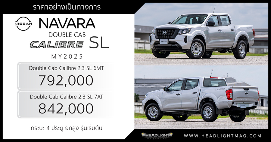 • Navara Calibre 2.3 SL 6MT : 792,000 บาท