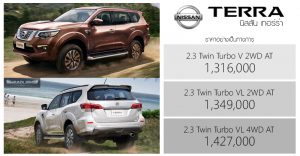 ราคาอย่างเป็นทางการ Nissan TERRA (เทอร์ร่า) ดีเซล 2.3 เทอร์โบคู่ : 1,316,000 – 1,427,000 บาท