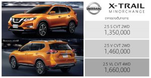 ราคาอย่างเป็นทางการ Nissan X-Trail Minorchange เบนซิน 2.5 ลิตร : 1,350,000 – 1,660,000 บาท