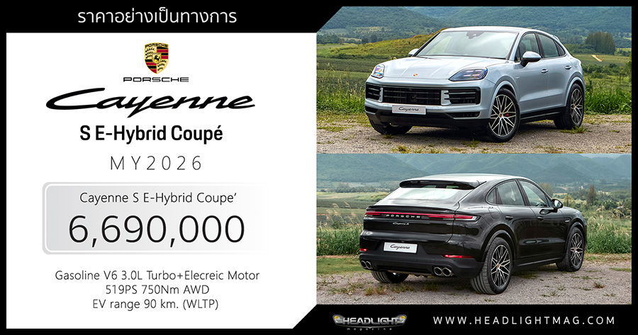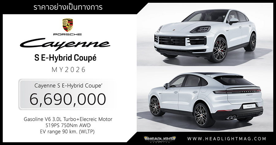 ราคาอย่างเป็นทางการ Porsche Cayenne S E-Hybrid Coupe’ (MY2026)
