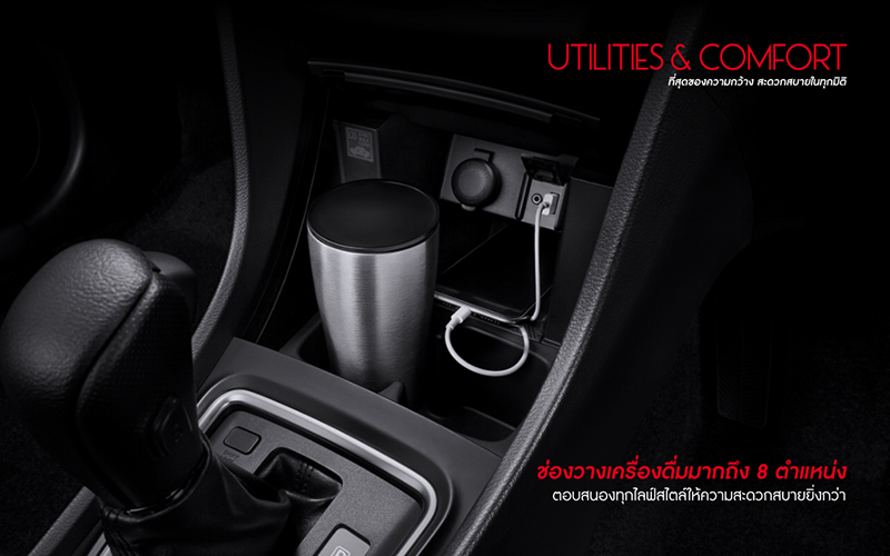 - ช่องชาร์จไฟ 12V 2 ตำแหน่ง (หน้า-หลัง)