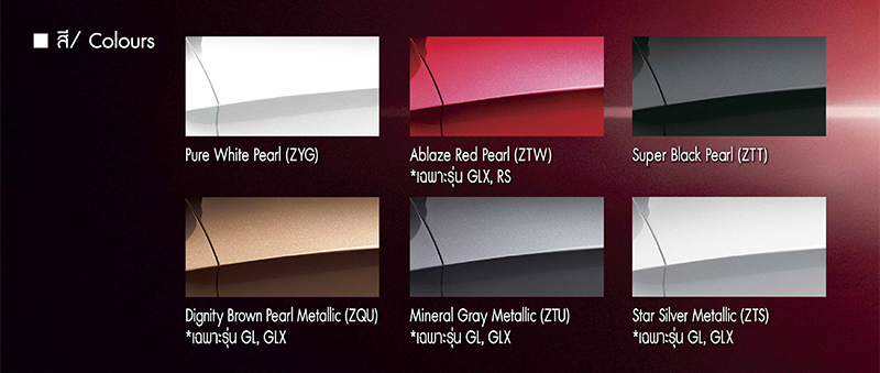 สีตัวถังภายนอก มีให้เลือก 6 สี