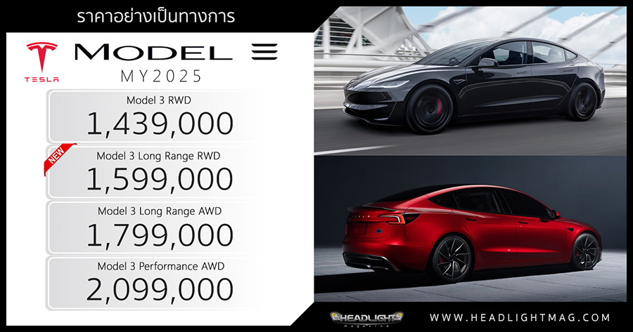 ราคาอย่างเป็นทางการ Tesla Model 3 (MY2025)