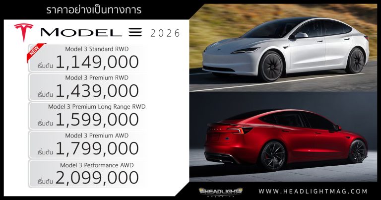 ราคาอย่างเป็นทางการ TESLA MODEL 3 (MY2026) Model 3 Stan … อ่านเพิ่มเติม ราคาอย่างเป็นทางการ + เทียบสเป็ค TESLA MODEL 3 (MY2026) : เริ่มต้น 1,149,000 – 2,099,000 บาท