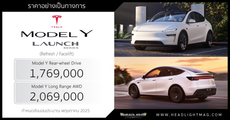 ราคาอย่างเป็นทางการ Tesla Model Y Launch Series (Faceli … อ่านเพิ่มเติม ราคาอย่างเป็นทางการ Tesla Model Y Launch Series (Facelift) : เริ่มต้น 1,769,000 – 2,069,000 บาท | ส่งมอบ พฤษภาคม 2025