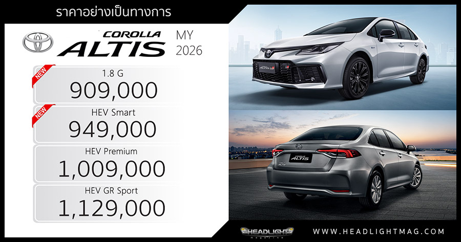 • Corolla Altis HEV Smart : 949,000 บาท (NEW)