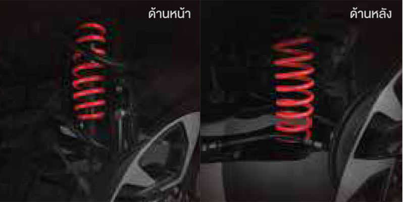 - ด้านหลัง : แบบ 4-Link พร้อมคอยล์สปริง และ เหล็กกันโคลง