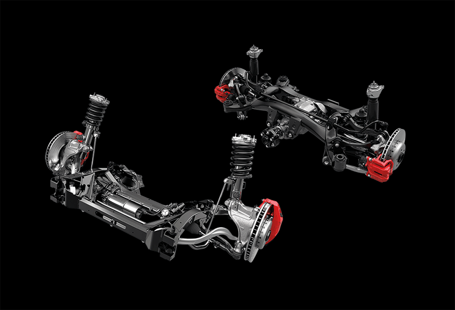 - เสริมความแข็งแรงบูชยางสำหรับปีกนกด้านหน้า (Front Control Arm) และขายึดยางเสริมแรงสำหรับซับเฟรมด้านหลัง (Rear Subframe Mount) ช่วยควบคุมรถได้อย่างแม่นยำยิ่งขึ้น