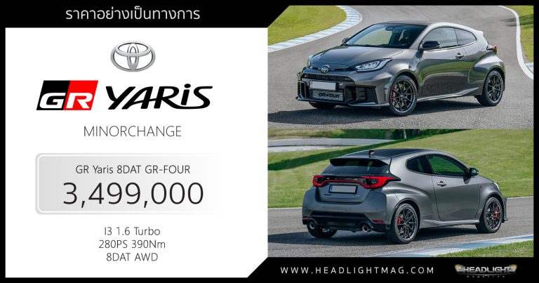 ราคาอย่างเป็นทางการ Toyota GR Yaris Minorchange GR Yari … อ่านเพิ่มเติม ราคาอย่างเป็นทางการ Toyota GR Yaris Minorchange : 3,499,000 บาท | เบนซิน 1.6L Turbo 280 แรงม้า เกียร์อัตโนมัติ 8DAT