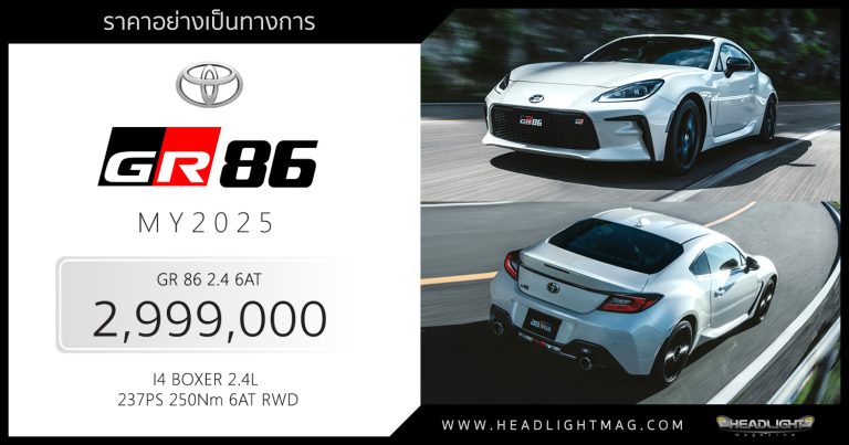 ราคาอย่างเป็นทางการ Toyota GR86 (MY2025) GR86 2.4 6AT : … อ่านเพิ่มเติม ราคาอย่างเป็นทางการ Toyota GR86 (MY2025) : 2,999,000 บาท | ปรับปรุงเครื่องยนต์ พวงมาลัย ช่วงล่าง ฯลฯ