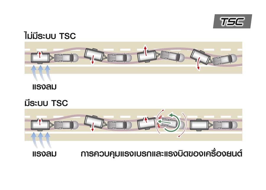 - ระบบควบคุมการส่ายของส่วนพ่วงท้าย TSC